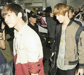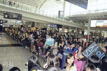 (香港)3隊韓國人氣男子組合FTISLAND成員李弘基和崔珉煥、SHINee成員鐘鉉和泰民,以及MBLAQ成員李準和Mir4月10日下午襲港,吸引200多個粉絲到機場接機,場面混亂。機場方面出動近50名保安及警察架起鐵欄維持秩序,不過粉絲仍不顧危險衝出馬路追車,險象環生。