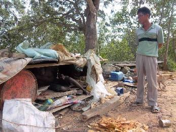 “我在辭職後住在海堤旁一間屋子,屋子損壞後,我便建起目前這間屋子,一直到現在。以前生活沒現在這麼困難,如今岸邊的魚蝦大減,幸好有漁村的華裔朋友幫忙。”
