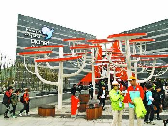中國館的等候時間相對較長,參觀時間同為約15分鐘。跟韓國館一樣,館內無實體展品,只有一部動畫。動畫內容描述小女孩和中華白海豚的友誼,其後白海豚遇險,長大後當上了海洋專家的女孩,勇救白海豚脫險。動畫播完後,兩邊熒幕升起,一男一女表演者徐徐起舞,舞蹈既似芭蕾又似溜冰。同場的內地同胞紛紛認為展覽比預期失望。和中國館相鄰的日本館也以動畫作展示形式,館內分三部份,展示日本的漁村及海洋風貌,並設動畫故事描繪311後災民如何致力重建及走出傷痛。