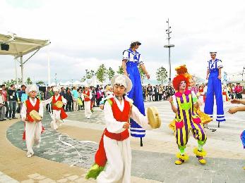 韓國傳統舞蹈在嘉年華中遇上西方雜耍。(圖:香港明報)
