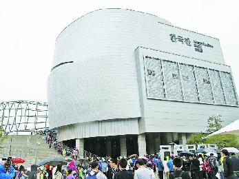 韓國館內的禮儀小姐會引領參觀者欣賞天幕電影。(圖:香港明報)
