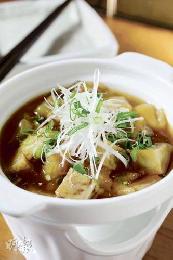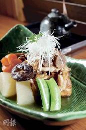 牛筋、黑糖、日本泡盛、醬油,一同燜煮10小時,最後加入田芋,牛筋非常腍滑,帶淡淡黑糖甜味。(港幣52元,b)(圖:香港明報)