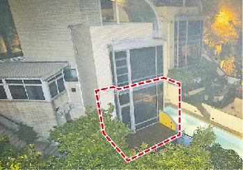 香港候任特首辦6月20日晚間突然表示已清拆梁宅僭建的玻璃棚後,記者立刻趕往現場拍攝,發現僭建玻璃棚(紅框示)已徹底拆掉。(圖:香港明報)