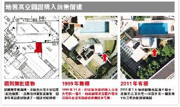 《明報》翻查1999年底地政總署的高空圖片,即梁振英簽約購買山頂貝璐道4號裕熙園兩間洋房前一個月,發現洋房並沒有僭建玻璃棚或木花棚,到了2011年的高空圖片,則顯示僭建玻璃棚已存在,反映僭建物是在梁購入大宅後才加建。事實上,候任特首辦20日的回覆也承認是梁改建的,原因是玻璃棚前身為一個木花棚,梁買入此物業時已經存在,終因白蟻蛀蝕嚴重,幾年前被改建為一金屬加玻璃的結構。