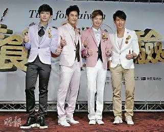飛輪海現在只會在代言商品時合體,不過炎亞綸(左起)、汪東城、辰奕儒、吳尊仍然一條心。(圖:香港明報)