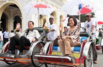 在“喬治市入遺4週年慶典”開幕儀式上,林冠英與周玉清的互動甚佳;新聞發佈會結束後,倆人及行政議員就乘上三輪車一同遊古蹟區。(馬來西亞星洲日報)