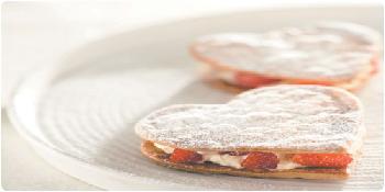 3.用湯匙將混有草莓的芝士刮成球狀,放在烤好的酥皮上,再蓋上另一片酥皮,最後灑上糖粉即成。(溫哥華明報)