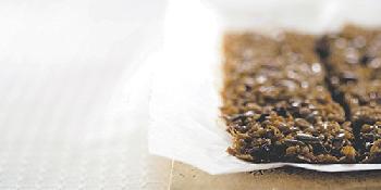 3.將燕麥片倒入步驟2的材料中攪拌,直至所有燕麥都沾有糖漿為止,然後倒入盆中,壓平,放入已經預熱的烤爐中烤25至30分鐘。