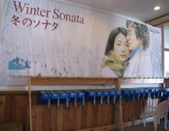 龍峰纜車站掛有大大的《冬季戀歌》海報,告訴遊客此處是戲劇的取景地。(圖:大馬星洲日報)