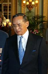 泰國具有崇高威望的泰王普密蓬,1927年12月5日出生於美國馬薩諸塞州的劍橋,1946年登基,1950年5月5日正式加冕為泰王,是目前世上在位最久的國家元首。普密蓬21歲時在瑞士遇上交通意外導致右眼失明,同年在法國巴黎遇上詩麗吉王后,兩年後完婚。2003年,泰國民眾因泰國設在柬埔寨金邊的大使館遭焚燒而抗議,群情洶湧險釀騷亂,當時的警察總長轉述泰王號召民眾保持冷靜的要求。人群之後漸散去,局面也即刻恢復平靜,由此可見泰王在民眾心目中的崇高地位。(資料來源:維基百科)