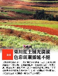 旅遊東川紅土最佳季節 東川紅土地地處烏蒙山區,屬高原山區地貌,此地山嶺縱橫交錯,出巒起伏不平,紅土丘陵一望無際,加之季風影響,形成了氣候溫和、乾濕分明的高原季風型氣候。到紅土地攝影最好的季節是9到12月,這個季節油菜、土豆、蕎麥正在陸續收穫,冬小麥正在發芽拔節,還有路旁、村子旁、樹林裡的楊樹黃了,漆樹紅了;其次是1、2月,這時小麥生長正旺,月亮田裡放滿了水;還有就是5、6月,油菜花開了,麥子成熟了。這些季節是色彩豐富的季節。 |
