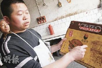 劉德華老伯的飯店位於一條通往都江堰公路旁的小鎮觀勝鎮,僅由數十間簡樸房子組成。其中一幢兩層高的房子上,耀眼的金漆招牌寫“正宗劉德華板鴨店”,玻璃櫥窗寫明國家註冊字樣。