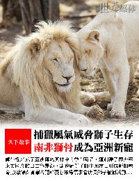 (非洲)獅骨近來成了亞洲傳統藥材中的熱門商品,這刺激了南非至東方國度的出口貿易額,卻也對獅子的生死存亡形成新的威脅。不少保育學者對於守獵獅頭標本活動已經大動肝火。