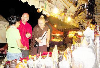 外國遊客能在金邊與暹粒的夜市里,選購各式雕刻商品。(圖:柬埔寨星洲日報)