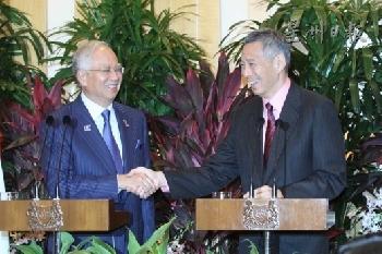 納吉與李顯龍(右)對於此次會談皆表滿意。(圖:馬來西亞星洲日報)