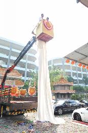 (新加坡)新人結婚出新招!大喜之日竟出動吊車,新人懸空“吊”入廟內進行宣誓儀式。海軍部街善蓮堂3月10日一早就洋溢著喜氣,大家興致勃勃準備迎接一對新人時,新娘車還沒出現,卻迎來了一輛吊車。吊車的出現讓人不解,在場賓客四處打聽,才知吊車原來是新郎李德強(34歲,車行老闆)大費周章安排的,目的是為了配合新娘的“超長婚紗”,讓她有個難忘的婚禮。
