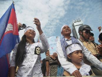 (柬埔寨)在救國黨副主席庚速卡的領導下,近千人反對黨成員4月24日早在自由廣場舉行抗議集會,要求對柬國的選舉制度進行改革。