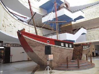 博物館內的“ 紅頭船”。清代廣東東部海船的俗稱,亦稱洋船、商船。(圖:大馬星洲日報)