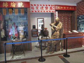 模擬華裔在各地開設的理髮店、中藥店等。(圖:大馬星洲日報)