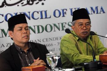 印尼伊斯蘭學者理事會(MUI)23日指出,希望印尼不要舉辦該選美比賽。MUI資深成員朱奈迪(右)說:“伊斯蘭教義禁止女性在公共場合曝露身體。即使比基尼環節已被取消,參賽者還是會穿著緊身裙和曝露身體部位。”(圖:法新社)