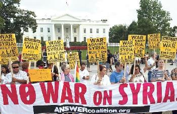 英美民間反戰情緒高漲。美國紐約時報廣場昨有數百民眾示威,反對美國攻敘,有示威者指直指攻敘與伊戰一樣是“謊言”。英國反戰組織則策劃週末在倫敦街頭舉行千人示威,要求停止軍事介入敘利亞。(香港明報)