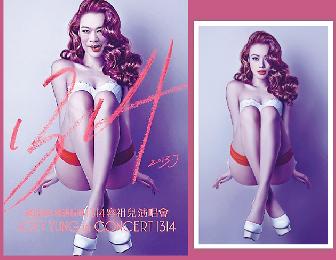 阮兆祥惡搞容祖兒的演唱會海報(右圖),將自己的頭key在原裝海報。