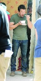 麥克華堡用筷子吃青瓜,十分滋味。(圖:香港明報)