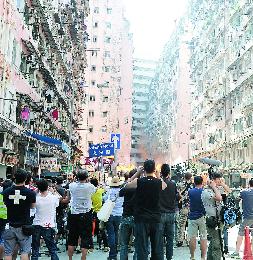 《變形金剛4》連日在香港的外景拍攝引來不少圍觀者,24日街坊看到嘩嘩聲兼拍手掌。(圖:香港明報)