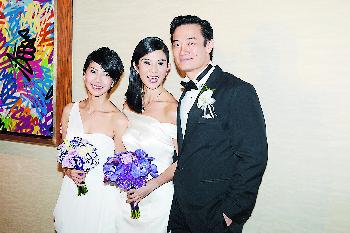 6時許參加婚宴的嘉賓陸續到場,由香港專程往出席的梁詠琪、李心潔、袁詠儀與徐克等陸續現身。一對新人邱韶智與楊采妮步出接受記者訪問,伴娘許茹芸伴在新娘子身邊。Charlie稱心情很開心,特別感恩到來參加婚禮的朋友,有來自世界各地專程到新加坡,在婚禮籌備開始她感到好幸福。問她是否被感動哭了多次?她笑說:“你知道我很眼淺,容易哭,有很多感動時刻。”原來許茹芸擔任伴婚是她們的約定,誰先結婚另一個要做伴娘。