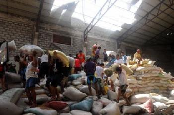 軍警對大批一湧而上的災民束手無策,據報,米倉內10萬袋白米被抬走。
