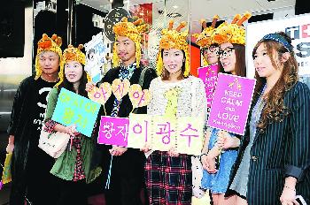 (香港)韓國人氣綜藝節目《Running Man》主持李光洙,獲重金禮聘來港為天梭表分店剪綵,吸引近千人到場圍觀,警方要封鎖一條行車線,海防道一度擠塞。李光洙發揮“亞洲王子”魅力,不停揮手兼比勝利手勢,引得粉絲尖叫聲不絕。赴港出秀身價達85萬元(約合10.9萬美元)的李光洙,由於人潮擠湧,他只短短現身10分鐘,換言之1分鐘價值8.5萬元,難怪韓星紛紛赴港掘金。