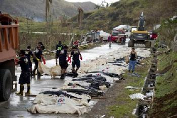 菲律賓武裝部隊週二表示,已針對協調和組織人道救援和救災工作發佈紅色警戒,確保所有部隊成員做好投入救援工作的準備。政府數據顯示,風災至今奪走3892條人命,並有大量建築物和農耕地被毀,經濟損失達117.3億披索。由於死傷者眾多,許多災區路邊堆滿屍體,衛生情況惡化。(馬來西亞星洲日報)