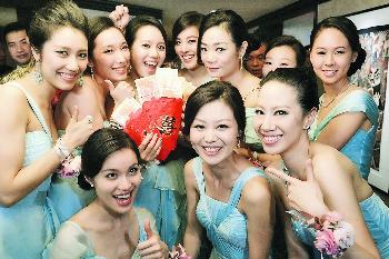 汪詩詩(前右)率領一班姊妹,成功獲得豐厚開門紅包。(圖:香港明報)