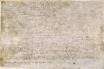 1215年,英格蘭國王約翰在貴族的脅迫下,簽署《大憲章》(The Great Charter)。訂立大憲章的主因是教宗、英王約翰及封建貴族對王室權力出現意見分歧。大憲章要求王室放棄部份權力,尊重司法過程,接受王權受法律的限制。雖然第一次發佈的大憲章只維持了數週,但是約翰死後的多次重新發佈,使它成為了永久的法律;大憲章亦成為了日後英國憲法的基石。(資料來源:維基百科)