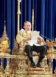 此外,泰王近年健康日差,2009年因肺部感染入院休養,至今年8月才出院。昨日是他4個月來首度公開露面,雖然看來精神不錯,但他全程需坐輪椅,發表講話期間則顯得神情呆滯,5分鐘內數度停頓,最後摺起講稿時緩慢而顯得手顫。外界擔憂,作為社會穩定力量的泰王,是否還有心力鎮懾局面和化解危機(見另稿)。