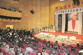 追思會於早上9時15分舉行,舞台中央放置女姐的巨型遺照,寫著“著名粵劇藝術家紅線女追思會”,兩側輓聯“我的生命屬於藝術我的藝術屬於人民”。大會安排粉紅色康乃馨給弔唁的戲迷向女姐獻花。場內設230個座位但早已爆滿,不少戲迷站在會堂內,現場逾300人。追思會開始由主持人率領眾默哀,接著由廣東省文化廳廳長方健宏致辭。