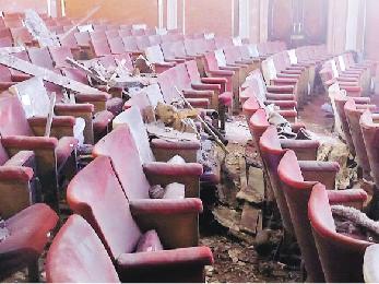 話劇於晚上7時半開演。開場10分鐘後,部份觀眾已聽到一些泥石剝落聲或滴水聲,但都不以為意,有的還以為是劇場特別效果。到8時15分左右,台上演員忽然中斷演出,指著華麗的天花,其中一人且向觀眾高喊“小心!”,說時遲那時快,一幅約10平方米的天花墜落10米下的觀眾座,滿場泥塵碎屑。觀眾驚叫逃生,有的爬過座位奪門而出。