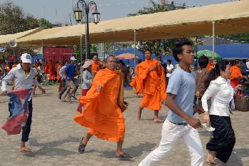 現場法新社攝影記者稱,數十名持盾牌和警棍的警員湧入金邊市中心的公園,迫使數百名示威者逃跑。