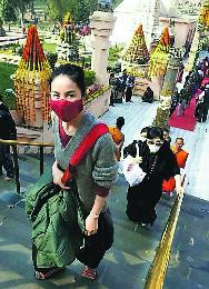 (中國)王菲的前夫李亞鵬因基金會“書院中國”及“嫣然天使”惹來是非,大女竇靖童又疑似紋身抽煙喝酒,不過王菲不受影響,繼續淡定過生活。1月9日,有網民發現王菲到印度菩提迦耶的正覺塔朝聖,照片中的王菲綁起馬尾、戴上大口罩,非常低調,像是單獨自由行。