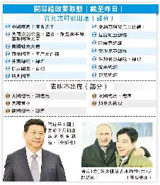 (中國)中國國家主席習近平應俄羅斯總統普汀邀約,下月7日將出席索契冬季奧運會開幕禮,成為歷來首名出席海外體育盛事的中國領導人。在歐美多國領袖表明不出席索契冬奧下,專家認為習近平的友好姿態反映中方重視中俄雙邊關係,並有拉俄抗美日聯盟意味。日本傳媒報導,原定只出席閉幕禮的日本首相安倍晉三有意修改行程,出席開幕禮。