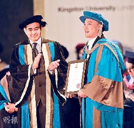(英國)在樂壇奪獎無數的陳奕迅(Eason),最近榮升陳博士,他獲得在英國讀建築系的母校金斯頓大學(Kingston University)頒授(Honors Degree of Arts)榮譽博士學位,以表揚他在音樂上貢獻及推動廣東歌的不遺餘力。