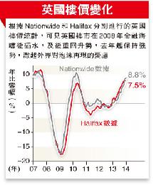 英國樓市近年成為海外投資者心水,去年整體樓價升近8%,其中倫敦樓價更上升11.2%。香港金管局早前亦斥資2.02億英鎊購入倫敦市中心某地產項目的一半業權。安永會計師樓旗下的經濟預測機構Item Club昨日便警告,倫敦樓市正經歷“有如泡沫”的情況,呼吁英倫銀行必須為樓市控制“做好行動準備”。