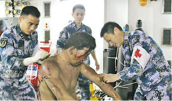 中新社報導指出,事發地點在浙江台州以東約300海里外。正在執行例行海上巡邏任務的東海艦隊舟山艦下午4時30分許接到求救信號,當時距離約10海里處有漁船遇難。終於在經過近3小時的航渡後到達事發海區,並把受傷漁民轉運上艦。其中一名重傷漁民身上40%皮膚淺度燒傷,艦上官兵即為傷者包紮、消毒、輸液,並在當晚9時安排專家視頻會診,確定治療方案。