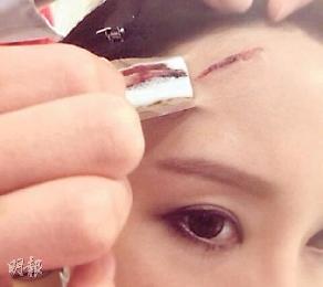 陳靜昨午在微博自爆受傷要往醫院縫針,自嘲“紅”運當頭。(圖:香港明報)