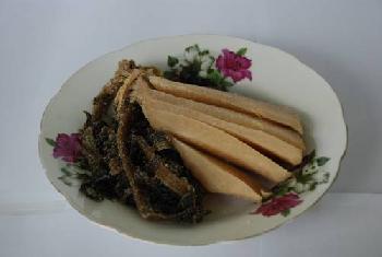 4.梅菜也稱為梅乾菜或霉乾菜,一說因在中國南方梅雨季節製作而得名,另一說是發霉的菜,口味上,可分“甜梅菜”和“鹹梅菜”2種。梅菜中以惠州梅菜最出名,色澤金黃透亮,聞之有一股香甜,食之清脆爽口。梅菜吸油能力特別強,與肉類同煮時,風味絕佳且不油膩、不滯胃。