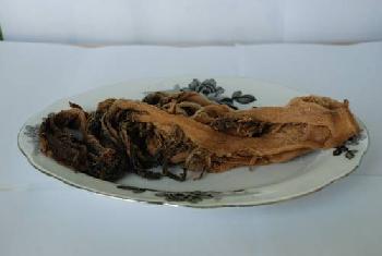 5.榨菜原料是莖瘤芥,製造過程中經高壓壓榨,排出多餘水分,達到爽口彈牙的口感,故稱“榨菜”。從醬缸拿出來的榨菜,每顆有拳頭般大,上面染了花椒、茴香、甘草粉和辣椒粉調成的艷紅色醬料,可以用來炒,也可以和粥或麵搭配吃,更可以煮湯,鹹中帶辣的滋味,很能刺激食欲。