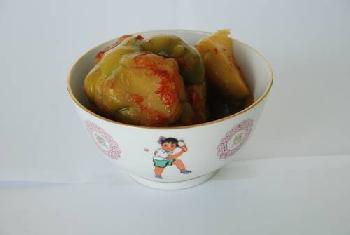 8.冬菜以大白菜、鹽水、蒜為主要材料,有特殊的香氣和蒜味,所以常用以調劑清淡菜式。小時候家中一直有1個深色的陶罐,上面貼了“天津冬菜”的商標,要煮湯了,打開陶罐挖一大匙出來,用水沖沖,丟進湯裡,即使湯裡的肉片少得可憐,有了這天津冬菜,也可以滾出1鍋鮮香夠味的湯水!