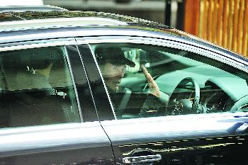 發哥駕車離開時見到記者,亦友善揮手打招呼。(圖:香港明報)