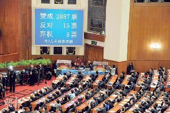 經修改後的政府工作報告,在昨晨的人大閉幕會議上順利通過。付諸表決的,還包括財政預算、國民經濟和社會發展計劃、全國人大委員長張德江所作的人大常委會工作報和以及“兩高”報告。除預算案有293張反對票外,當工作人員讀出最高法院及最高檢察院的報告分別有378和390張反對票時,現場一陣哄動,議論紛紛。