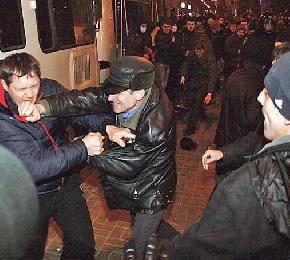 瀕臨俄羅斯邊境的工業重鎮頓茨克(Donetsk)是倒台總統亞努科維奇的根據地,100萬市民多數講俄語。週四,親俄與反俄陣營各約1000人同時在市內列寧廣場集會,一方贊成烏克蘭東部自治,另一方反對俄軍干預克里米亞。警方努力分隔敵對雙方不果,兩派示威者衝破防線,彼此投擲煙霧彈、火箭炮、煙花和雞蛋,又用棍棒打人。至少一名22歲青年遭捅殺,另有29人受傷,4人留院。兩派集會組織者被捕。